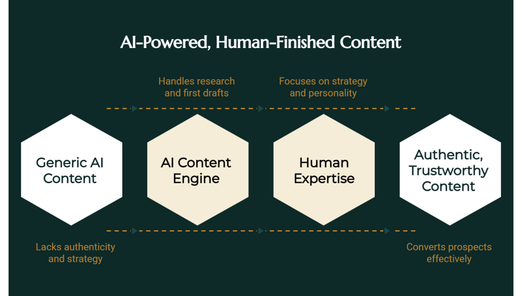 Generic AI content fails the Trust test immediately. Human-finished work that carries your authentic voice and specific market knowledge passes it every time.